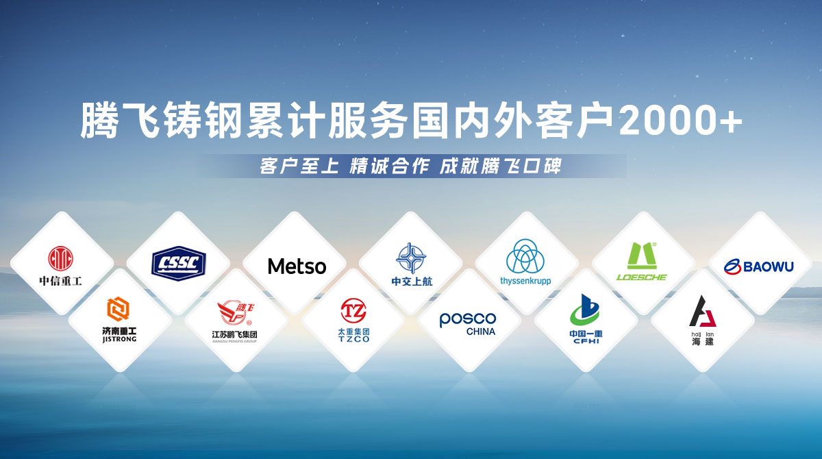 騰飛鑄鋼成立于2006年,位于全國鑄造基地河南省新鄉市,擁有員工300余人,是一家從事150噸以下碳鋼、低合金鋼、不銹鋼鑄鋼件研發、制造、服務為一體的國家高新技術企業?! 」就ㄟ^了ISO9001國際質量管理體系認證,擁有2項發明專 利,2項河南省科技成果、25項實用新型技術,通過了“環??冃гu級B級企業”驗收,先后榮獲“河南省鑄造行業綠色發展企業”、 “河南省科技型中小企業”、“河南省專精特新中小企業”等榮譽稱號?! 」緭碛?臺25噸電爐,4臺大型天燃氣熱處理爐、10米回旋自動拋丸機一臺, φ8m數控立車、φ10m數控滾齒機等各類高精裝備100余臺套,年產能3萬余噸,能為客戶提供從產品設計、木模加工、大型鑄造、大型加工一站式服務,產品廣泛應用于建材、冶金、鍛壓、冶金、水工、路橋、化工等多個重型行業。  長期服務于中信重工、中船重工、美卓、上海中交、萊歇、寶武、濟南重工等全球知名企業,在行業內擁有較高的市場知名度和美譽度。
